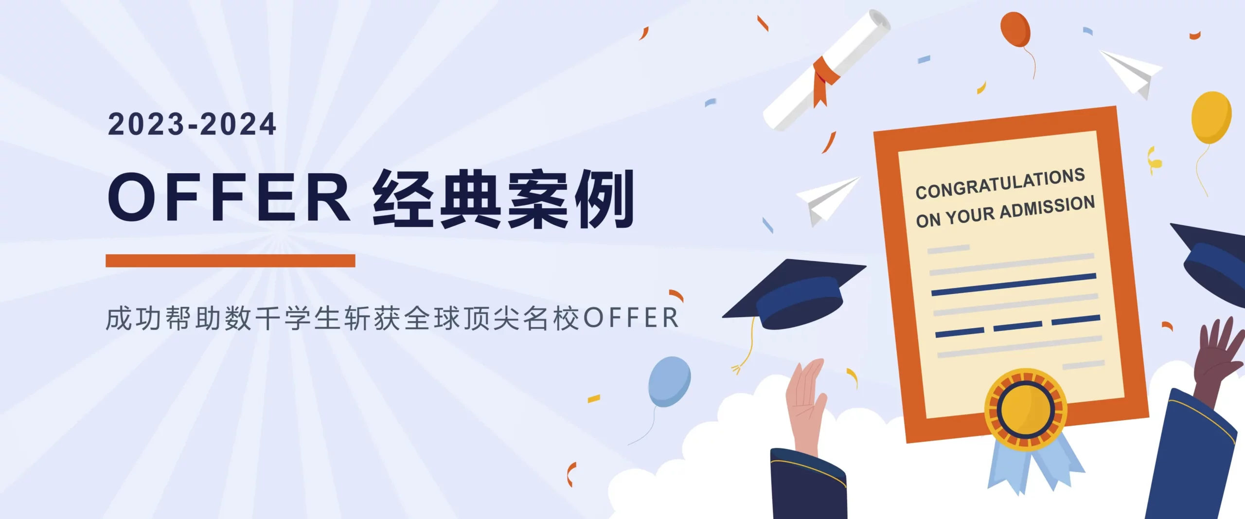 OFFER数据展示*截止至2024年 U.S.News TOP10&藤校 0 枚 港三新二院校本硕OFFER 0 枚 英国G5院校本硕OFFER 0 枚 奖学金总金额 0 万人民币 97% 美国TOP30名校录取率 87% 英国G5名校录取率 98% 澳洲G8名校录取率 97% 新加坡TOP2名校录取率 88% 中国香港TOP3名校录取率 斩获世界名校OFFER
